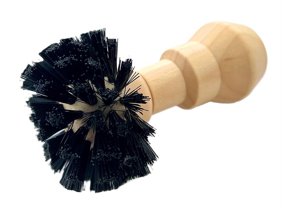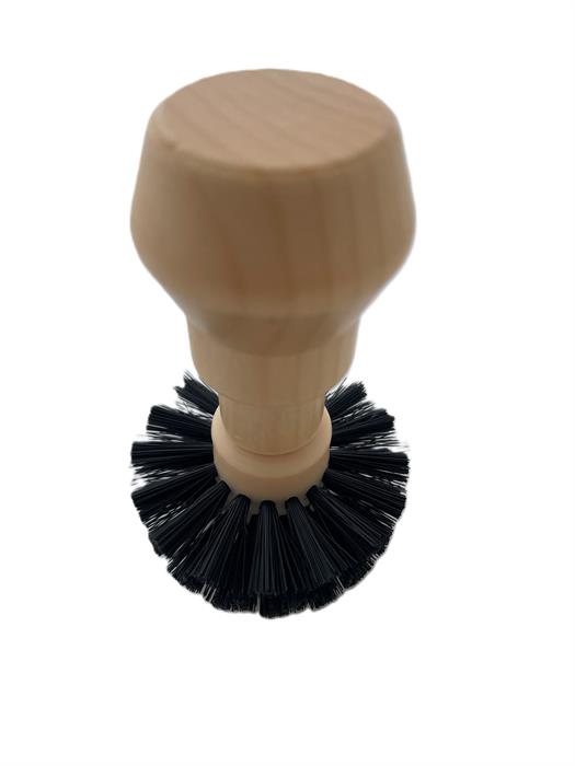 Reinigungsbürste aus Holz mit schwarzen Borsten. Die abgerundete Form der Borsten eignet sich optimal um den Kaffeesatz aus dem Pulversieb zu bürsten.Passend auf alle 58mm Siebe.