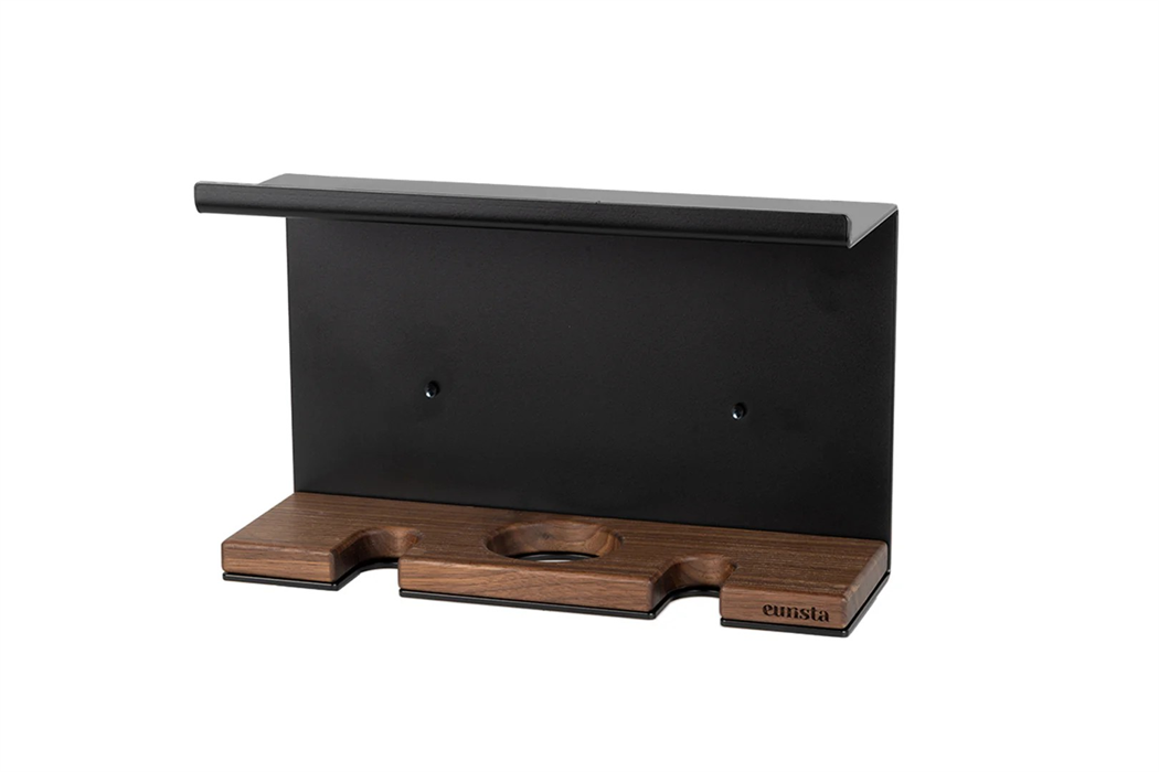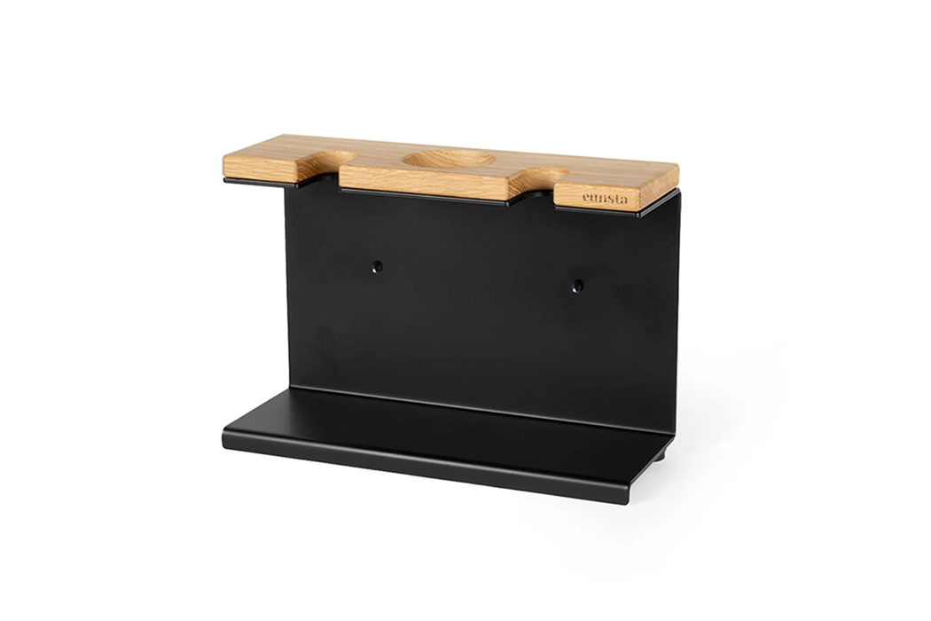 Eurista Station - Mehr Platz für dein Barista-SetupUnsere Eurista Station bietet dir maximale Flexibilität und mehr Ablagefläche: Sie kann freistehend, klassisch an der Wand oder sogar kopfüber montiert werden. So entscheidest du selbst, ob die Siebträger hängend oder stehend verstaut werden sollen. Mit ihren Maßen von 19 cm Höhe, 30 cm Breite und 10,5 cm Tiefe bietet sie ausreichend Platz für Siebträger, Milchkännchen oder weiteres Zubehör ohne dabei wuchtig zu wirken. Gefertigt aus 3 mm starkem Stahl überzeugt das Regal durch Stabilität, hochwertige Haptik und ein modernes, reduziertes Design.