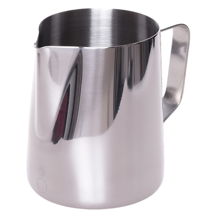 Gerade geformte Milchkanne aus Edelstahl, 60 cl Füllmenge, passend für 2 TasseData