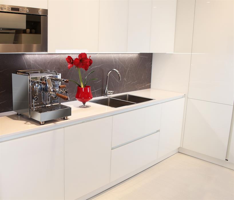 Die Neuinterpretation des Bezugshebels an der E61 Brühgruppe, der ERGOLIFT™, die verwendeten Materialien (u.a. Rahmen aus Edelstahl) unterscheiden die Maschinen qualitativ, optisch und nicht zuletzt haptisch von den üblichen Geräten auf dem Espressomaschinenmarkt.