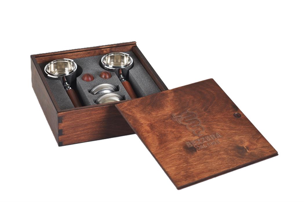 Bezzera Griffset passend zu allen Maschinen mit BZ-Gruppe (elektrisch beheizte Gruppe wie BZ10, DUO DE, Matrix DE, BZ09, BZ13, Crema DE), schön verpackt in einer Holzbox.Das Griffset enthält: