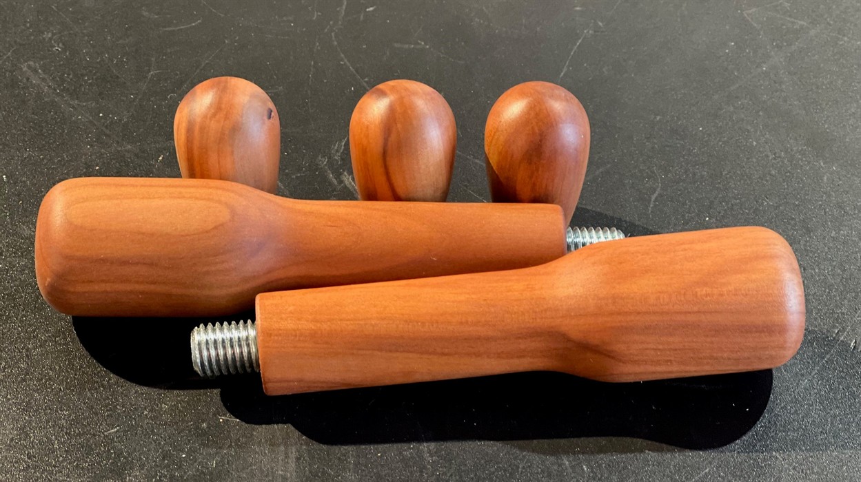 Das hochwertige Griffset besteht aus 2 Holzgriffen (M12 Gewinde) und 3 Bezugsknöpfen.