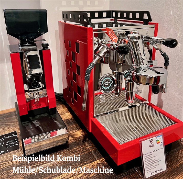 Die Bezzera ARIA MN ist in zwei Designs und 4 Farben erhältlich. Die Geräte in der Farbwahl «Schwarz + Holz» werden ab Werk mit Rosenholz Griffen (Siebträger sowie Bezugsknöpfe) geliefert.