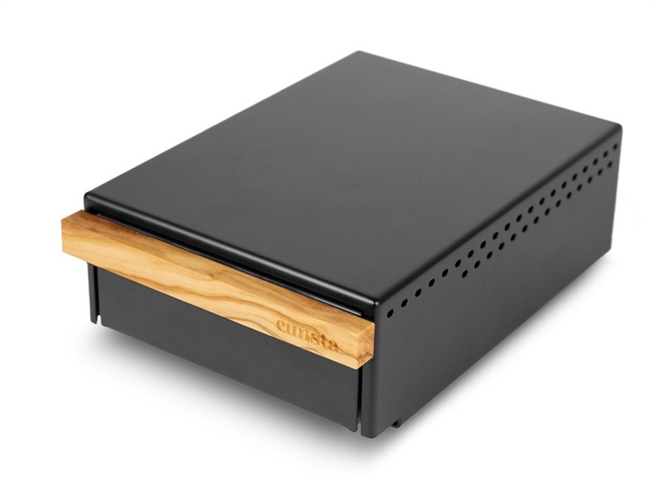 Eurista Ausklopfschublade "M" schwarz mit Olivenholz Griff(Sie erhalten die Basis-Schublade mit Nussholz und 1 zusätzlicher Olivenholz Griff)