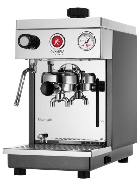 Olympia Espresso Maschine, Maximatic anthrazitDie Maximatic ist der passende Partner für alle, die etwas mehr Komfort suchen. Der elektrische Espresso-Halbautomat mit schwingungsgedämpfter Vibrationspumpe ist so handlich und klein, dass er fast auf einem DIN-A4-Blatt Platz findet. Möglich wird das durch die individuelle Anfertigung aller technischen Komponenten, von der schwingungsgedämpften Vibrationspumpe bis zum Heizkessel. Und damit ist die Maximatic die kleinste Zweikreismaschine der Welt. Durch ihre unkomplizierte Art ist sie leicht zu bedienen und zum Beispiel auch für Büros, Ateliers, Kanzleien, Studios, Praxen und Galerien geeignet.
