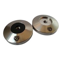 Durchmesser 58mm, Rondelle mit gelasertem Vitudurum Logo. M8 InnengewindeDie Unterteile haben eine ebene Fläche zum Andrücken des Espressos und werden aus massivem Edelstahl auf einer CNC Drehmaschine gefertigt.
