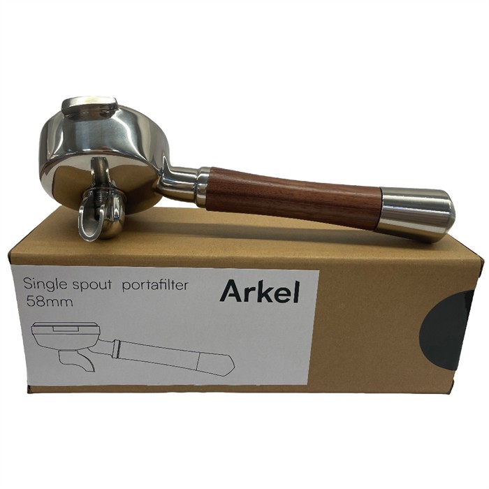 Arkel Siebträger 1-er Auslauf, mit Holz Griff und Edelstahlendeohne Siebeinsatz. without filter.
