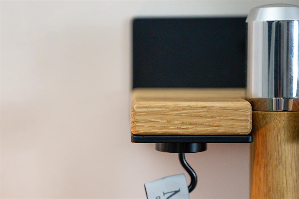 Damit dein Setup im Alltag zuverlässig und komfortabel funktioniert, haben wir alle Maße sorgfältig aufeinander abgestimmt. Die Abstände zwischen den Siebträgern betragen 15 cm (Mitte zu Mitte) und ermöglichen einen schnellen, einfachen Zugriff auch dann, wenn es an der Maschine mal zügig gehen muss. Unterhalb des Platzes für den Tamper haben wir zusätzlich Raum gelassen, um das Blindsieb direkt am gleichen Ort aufzubewahren so bleibt alles ordentlich und griffbereit. Außerdem liefern wir praktische Magnethaken mit, mit denen du das Regal flexibel erweitern kannst ideal für Baristatuch, Pinsel oder andere Tools, die du griffbereit aufhängen möchtest. Selbstverständlich ist auch alles benötigte Zubehör für den Aufbau im Lieferumfang enthalten, sodass du sofort starten kannst.