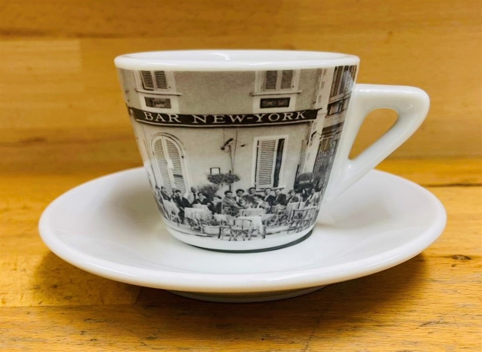 Dickwandige Cappuccino Tasse der Rösterei Caffe New York mit dem Sujet "Bar New York"Dati